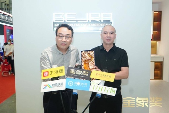 金象奖是由广东省卫浴商会联合国内、国际一流的设计专业机构及工业设计专业院校共同助推,以助推产业万象更新为基点,通过对话、链接设计师与材料商,打造中国泛家居领域极具创造性、思想性和商业影响力的设计大奖,致力打造成为中国泛家居领域的高端标杆设计奖项。金象奖组委会经初评推荐、调研、专家团评审等层层考核,最终确认获奖名单。 此次BEJRA百捷莱参与“金象奖”评选,并获得”金象奖——2023设计师推荐卫浴品牌”殊荣,既是来自市场的高度肯定,也代表了全行业的认可,是实力的彰显,实至名归。 走进BEJRA百捷莱E6C15馆,可以看到BEJRA今年带来的新品,在新材料融合应用方面做出了极大创新。一直以来,BEJRA始终坚守以创新进行产品迭代升级,从世界时尚的前沿,寻求新型材质与色彩构建,融合打造出非凡的浴室空间。 在展会现场,广东省卫浴商会领导一行为BEJRA颁发金象奖荣誉奖杯及证书。新卫浴网、设计好物、华人设计师网、华南家居网、智造联盟、卫浴链等战略媒体团现场对颁奖进行了报道,并采访BEJRA总经理郭培英女士。 大合影:广东省卫浴商会秘书长张书儒;BEJRA董事长黄桂飞;BEJRA总经理郭培英;BEJRA总经理营销总监吴富清;金象&